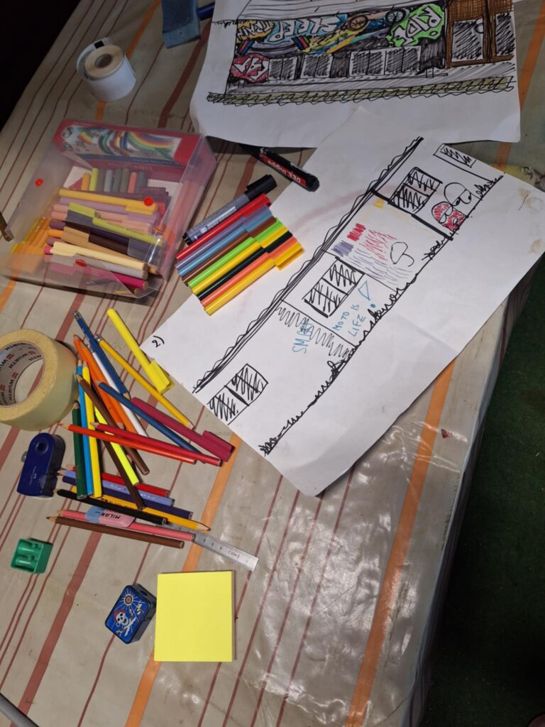 Sel aastal tegime 3. Tänavakunsti laagri – Ilmaga läks nagu läks aga oli tore ikka – Keskendusime seekord interaktiivsetele piltide loomisele. Tuli päris hästi välja 🙂